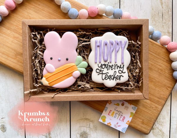 A charming Easter Duo Cookie Box featuring two handcrafted cookies decorated with soft seasonal details. Beautifully packaged with a ribbon and tag, it's the perfect small Easter gift or sweet surprise for Easter baskets, teachers and friends.
