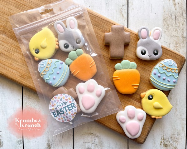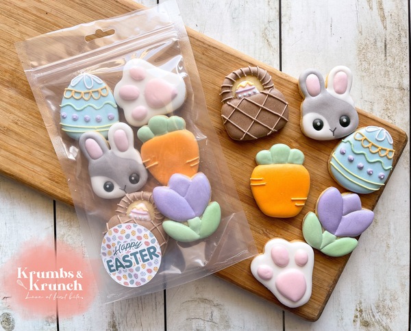 A pouch of adorable Easter mini cookies, perfectly bite-sized and beautifully decorated. The ideal sweet treat for Easter Baskets, gifting, or sharing.